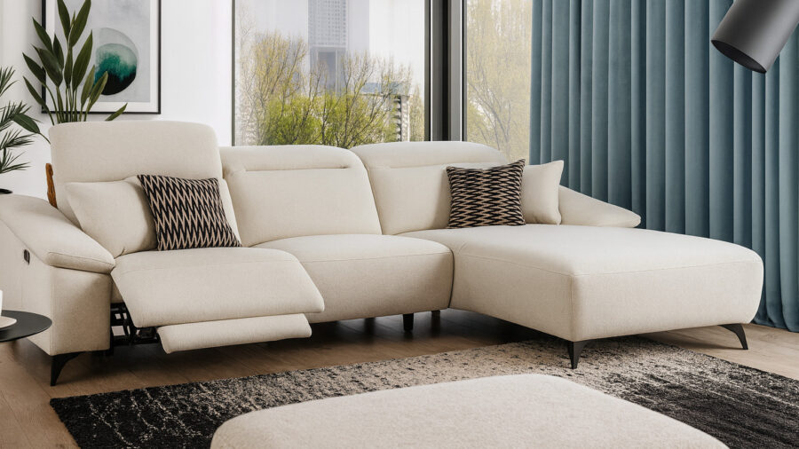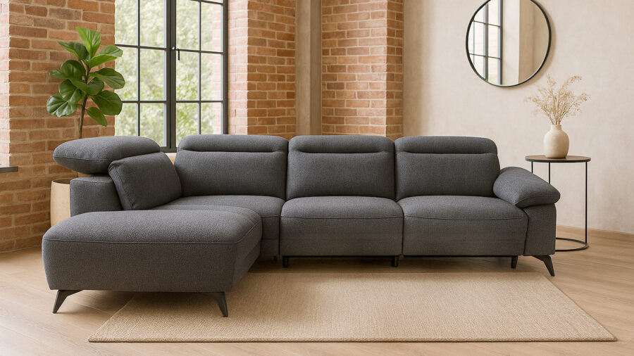 Canapé D’angle composable avec relax électrique, têtières réglables et tissu imperméable