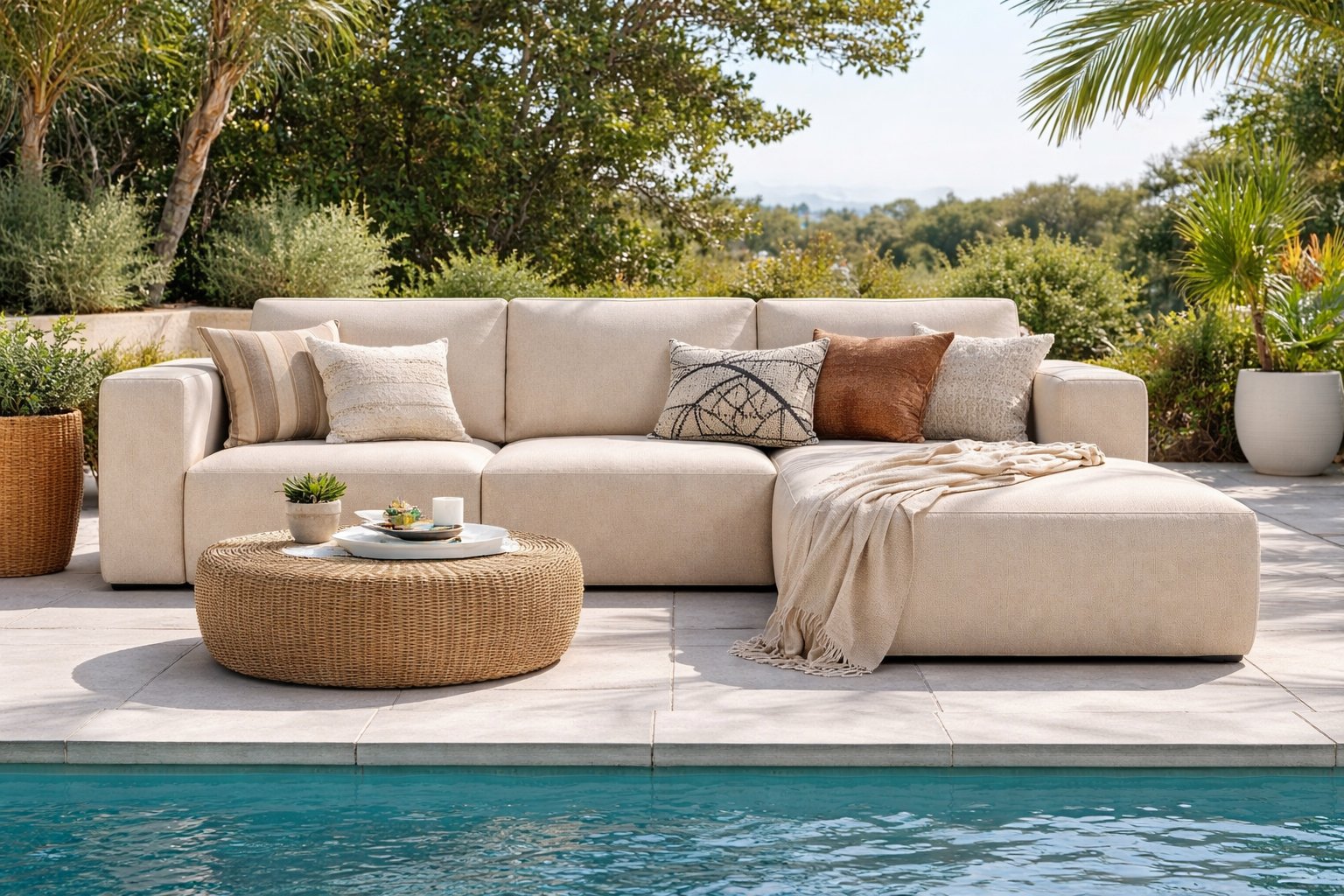 L'ensemble SOLEA CONFORT allie confort, fonctionnalité et élégance , créant ainsi un espace de détente extérieur moderne.